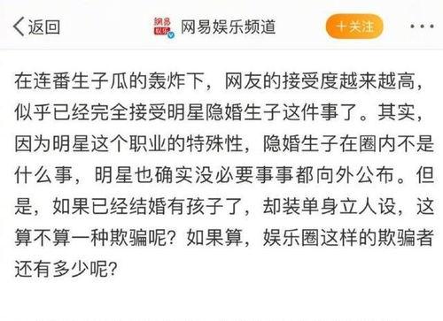 娱乐圈的婚姻状况也是一大看点。圈内人士爆料,很多明星的婚姻并不像表面上那么幸福。有的明星为了事业,选择隐婚或者分居;有的则因为性格不合,最终走向离婚。而那些看似恩爱的夫妻,背后也可能藏着不少秘密。